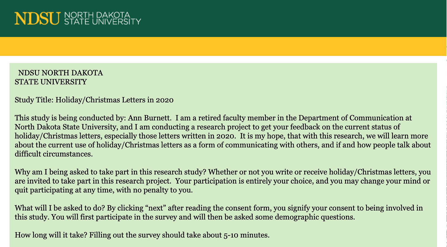 As noted in Quiz #95. “This is about as 2020 as it gets,” I am also trying to help a retired college professor gather holiday newsletters for a book she’s writing on holiday newsletters written during the pandemic. Dr. Ann Burnett has studied holiday newsletters for years, trying to understand and explain what they say about us and the times in which we live. She’s especially interested in holiday newsletters written during the pandemic. With each author’s permission, I’ve sent Burnett some of the newsletters we received in 2020. She’s sent me a form that’s an anonymous survey asking people to comment on their holiday newsletters in 2020. Did they send them--did they not? Did they get more newsletters this year and what were those newsletters like? If you’re interested in being part of her project, here’s the form.